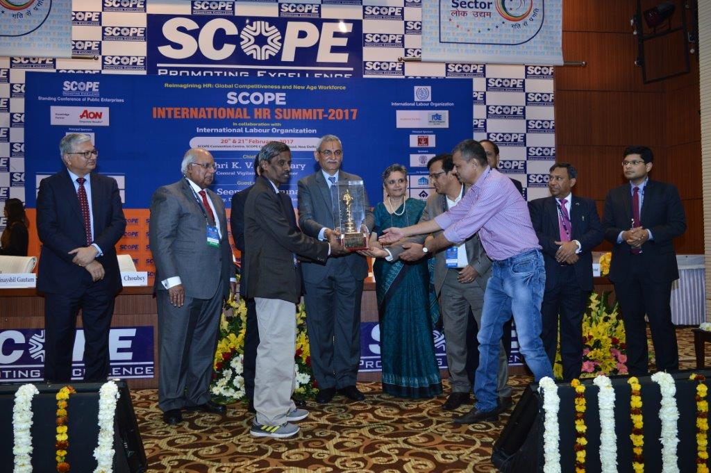 RCF Ltd has implemented a very unique and novel Labour welfare scheme titled 'Leave Bank'. This case study has been adjudged at second place in the case study contest organized by SCOPE as a part of ILO Scope International HRM Summit 2017. Seen in the photograph are Shri Thyagarajan, Executive Director (HR), Shri Siddharth Potpose, DGM (HR) and Shri Sanjeev Doshi, Chief Manager (HRD) receiving the Case Study Award at the hands of Chief Guest Shri K. V. Chowdary, Central Vigilance Commissioner, on 20th February, 2017 at Scope Convention Centre, New Delhi